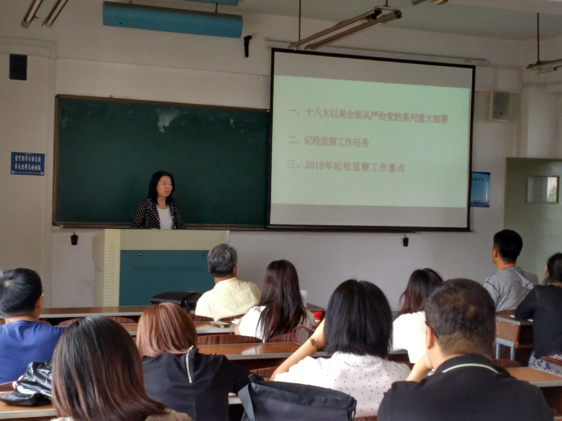2019年6月12日,马克思主义学院纪检委员马文萍老师为学院全体教师党员及研究生党员上廉政党课。