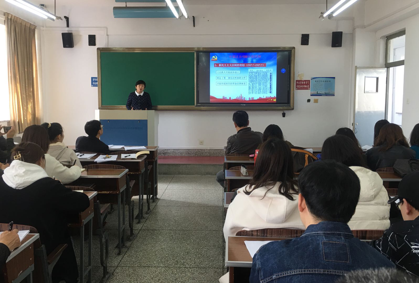 4月7日,我院主办的“唱响新时代·马院理论学习讲堂”总第六讲2021年第二讲在2号楼513教室开讲。由关颖教授作《中国共产党与中国法治建设的历史进程》(1921年-2021年)专题党课,学院全体师生参加了本次学习。