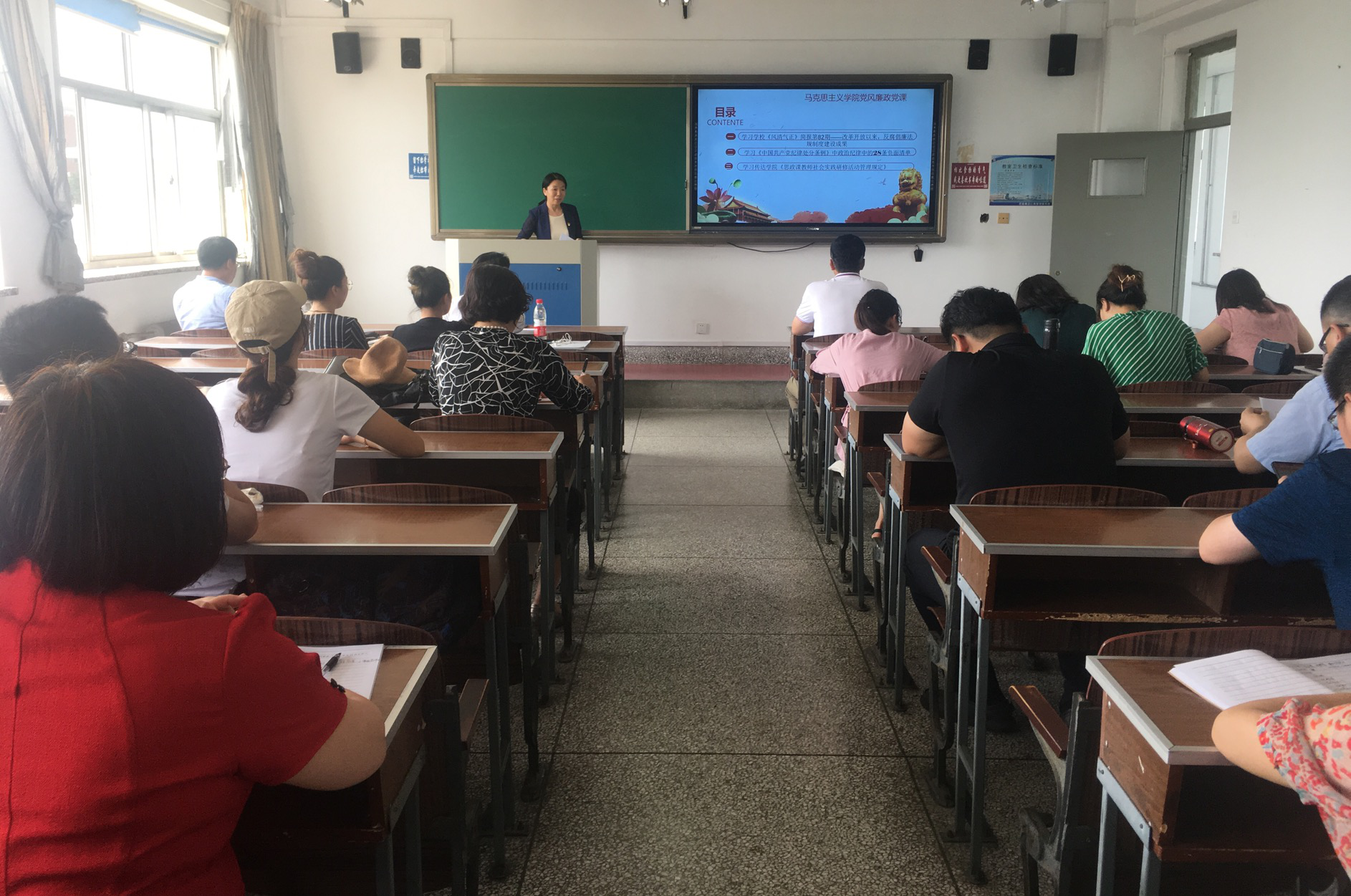 7月7日,学院副院长马文萍在2-513教室以《守纪律 讲规矩 做合格党员》为题为全院教师讲授廉政党课。