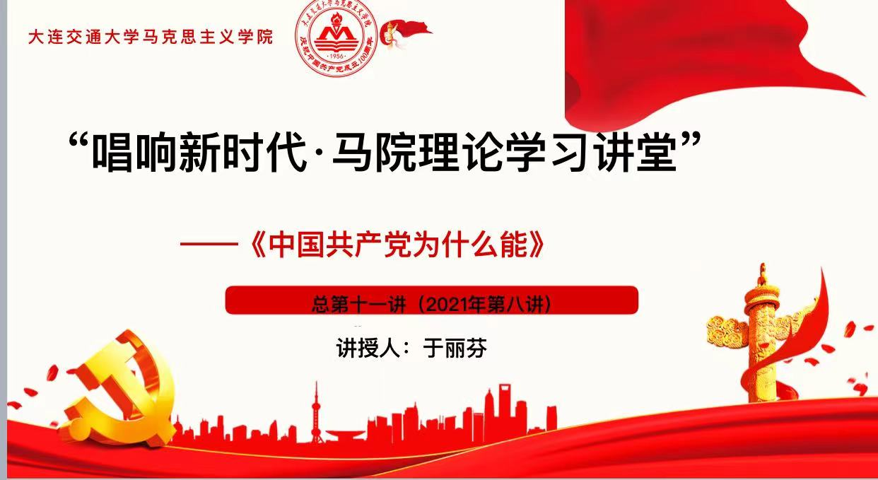 11月10日,受疫情影响我院主办的“唱响新时代·马院理论学习讲堂”2021年第八讲在线上开讲。于丽芬老师作《中国共产党为什么能》专题讲座,全院教师参加了本次学习。