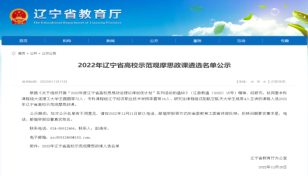 近日,中共辽宁省委教育工委、辽宁省教育厅公布了2022年辽宁省高校示范观摩思政课遴选名单,我院教师邵建飞主讲的《习近平新时代中国特色社会主义思想概论》、汪孟夏主讲的《思想道德与法治》两门本科生课程入选2022年辽宁省高校示范观摩思政课。