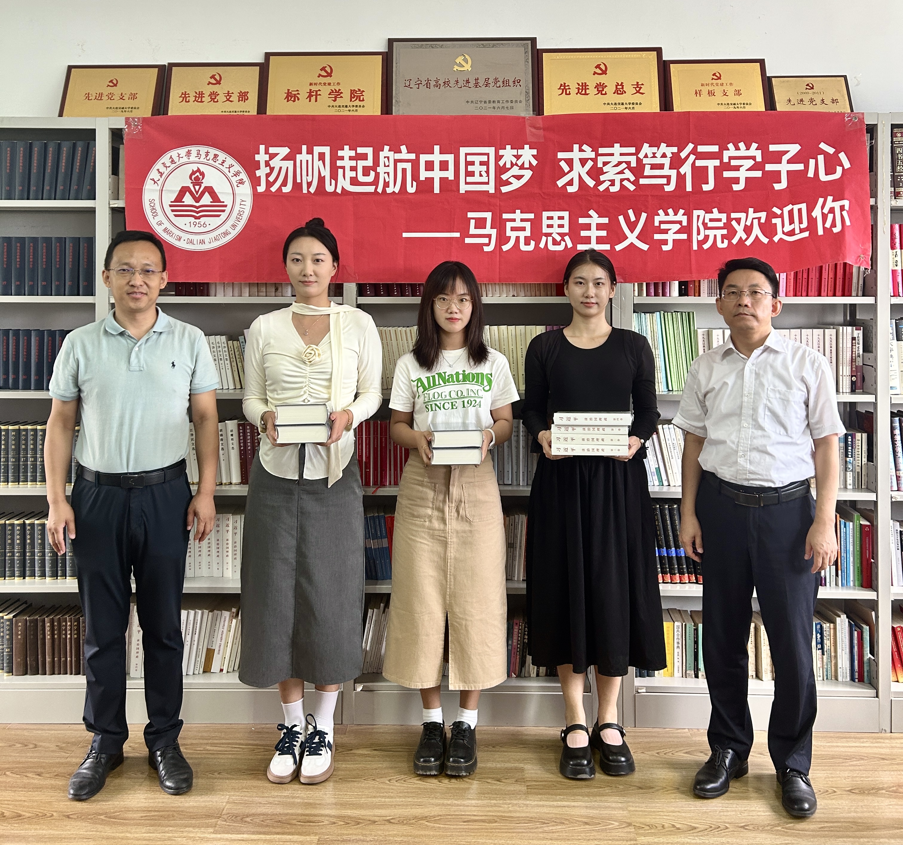 会上还举行了赠书仪式。学院为2023级研究生赠送了《马克思恩格斯选集》等经典书目。