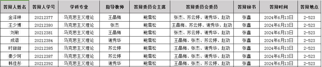 马克思主义学院2021级硕士学位论文答辩公告