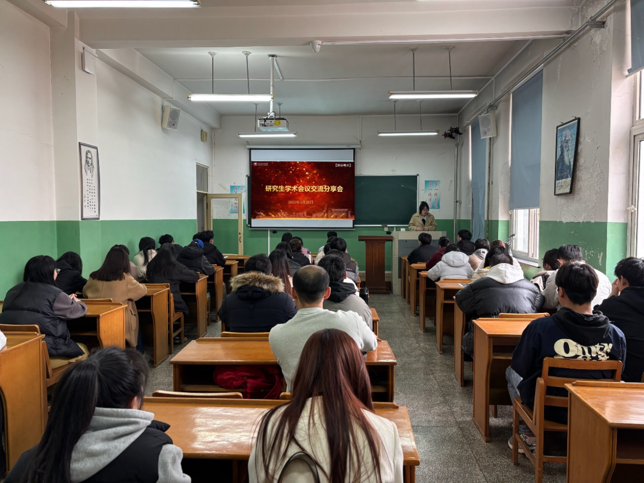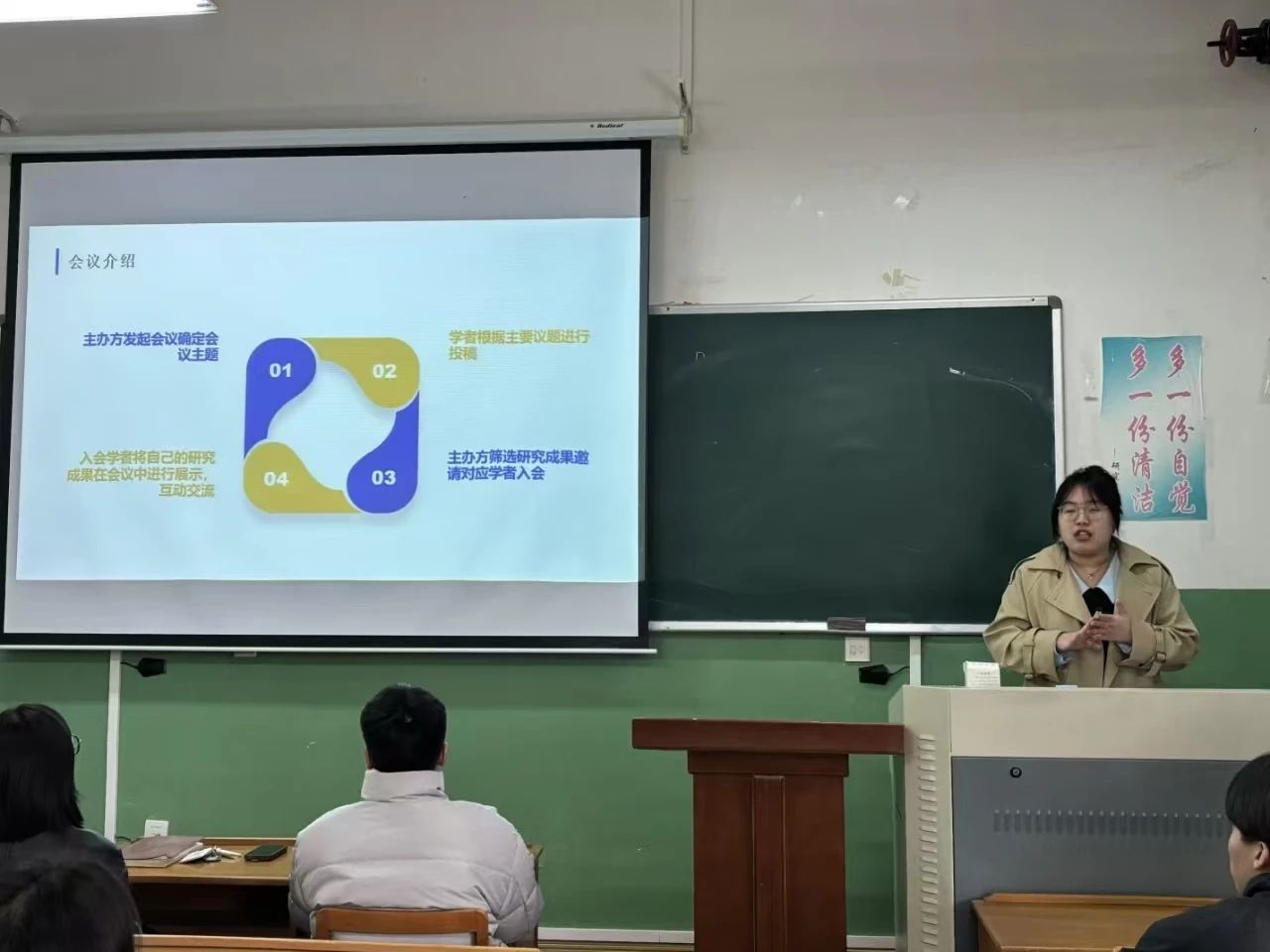 她介绍了学术会议参与流程,分享与专家学者交流的心得,还对会议中专家探讨的习近平文化思想、国际传播与人工智能时代问题等热点及未来研究方向进行分析,为同学们提供了学术论文选题思路。她建议同学们要充分利用相关公众号、官方网站了解参会途径;日常学习中,多读、多思、多沟通、多记录;参会前,打磨文章撰写视角与PPT制作,提升语言表达能力。