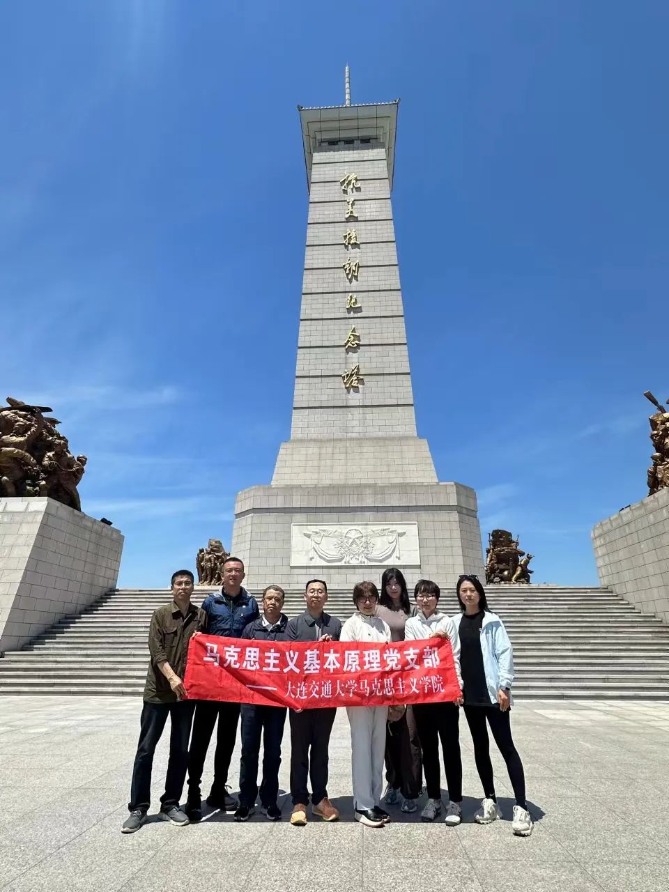 为扎实推进党纪学习教育,引导思政课教师进一步提升党性修养,丰富思政课课堂教学素材,将抗美援朝历史讲深、讲透、讲活,我院马克思主义基本原理党支部赴丹东抗美援朝纪念馆,以“赓续红色基因·凝聚奋进力量”为主题开展特色党日活动。