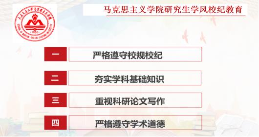 为严正学风、严明校纪,营造文明和谐的校园环境。11月4日,我院开展研究生学风校纪教育活动。本次活动以线上腾讯会议的方式进行,副院长马文萍担任主讲人,辅导员肖宇和学院全体研究生参加学习。