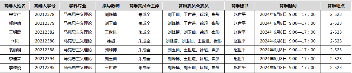 马克思主义学院2021级硕士学位论文答辩公告